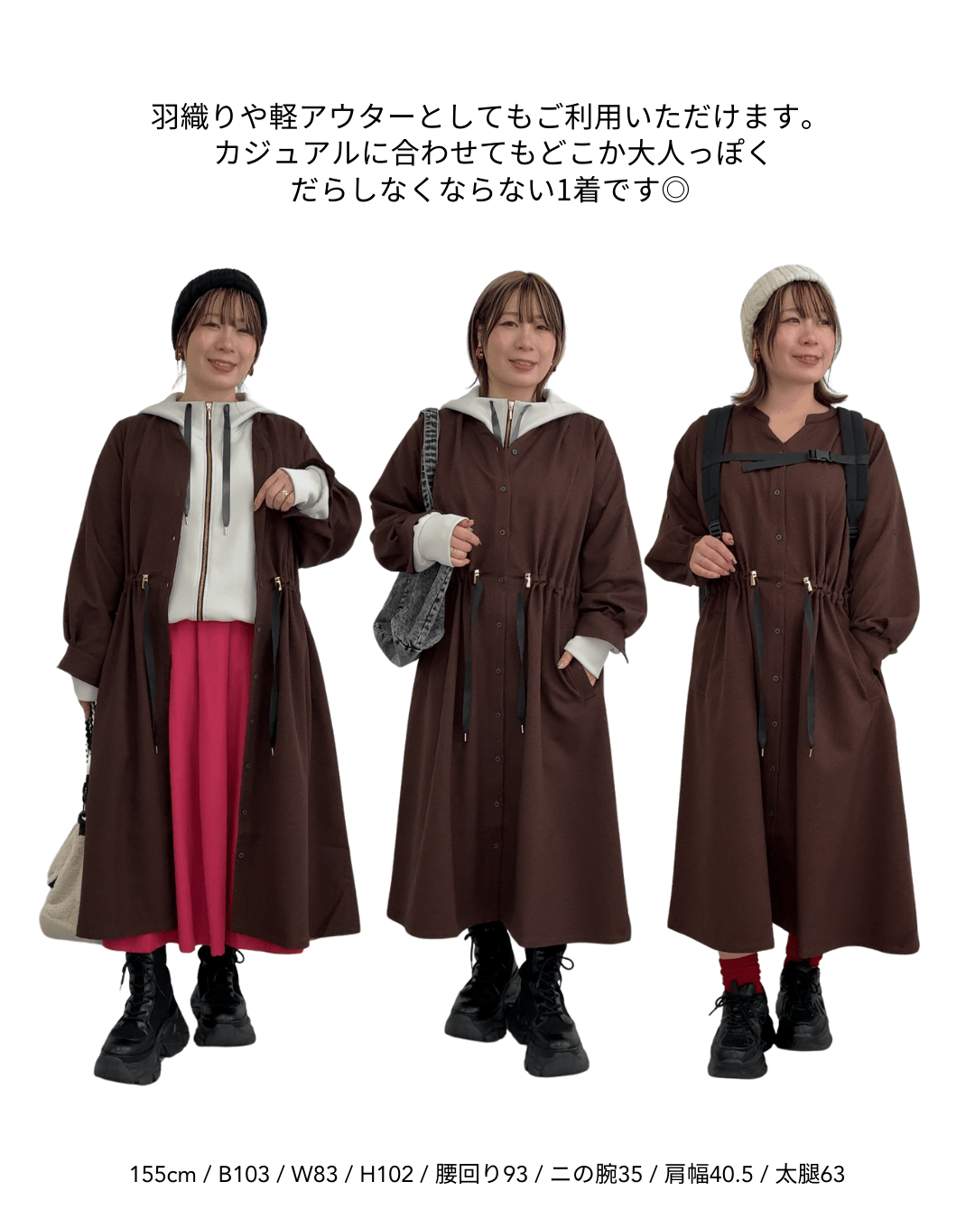 ★羽織りとして着用するときは鏡を見ながらギャザーをどれくらい寄せるか調整してみてください