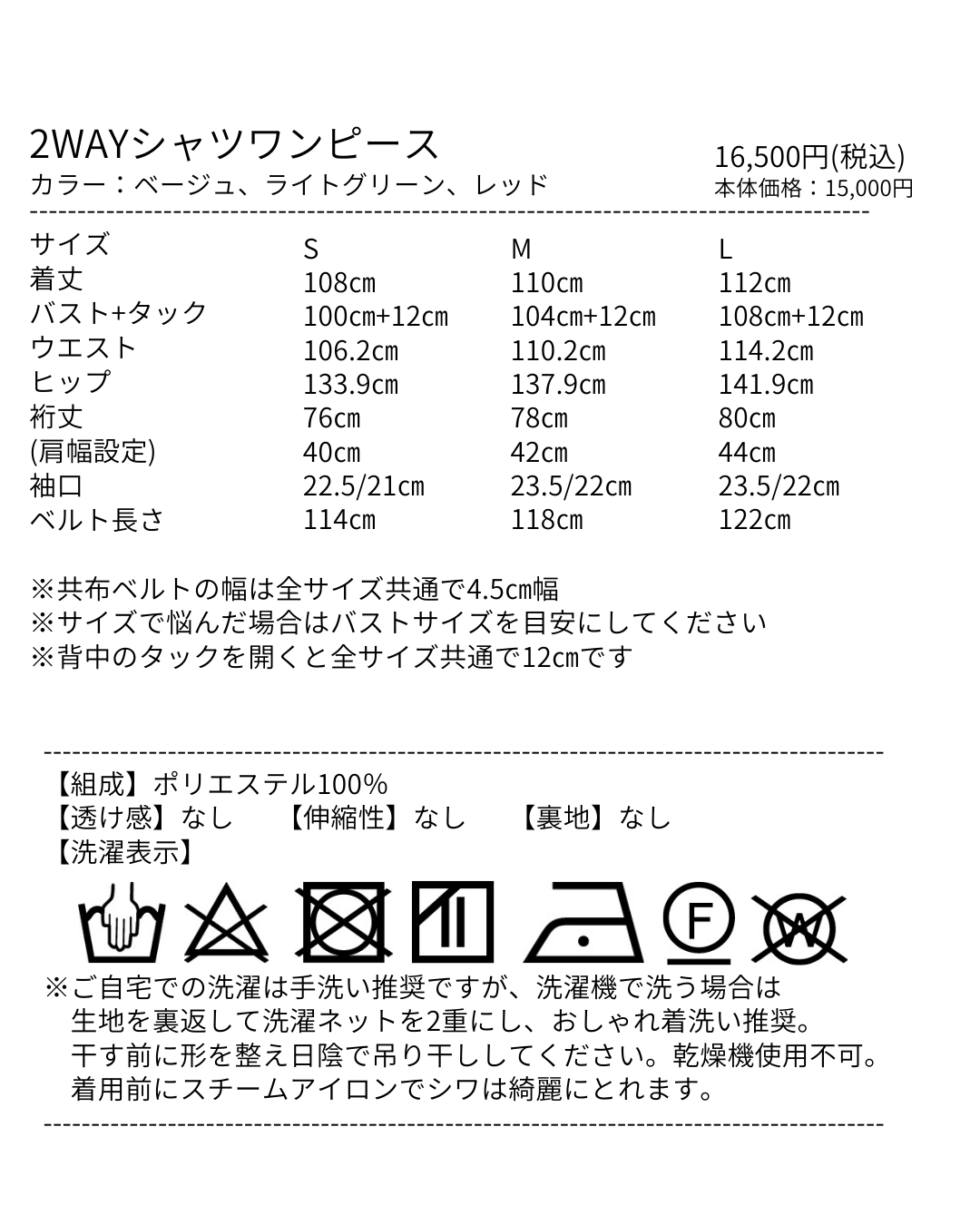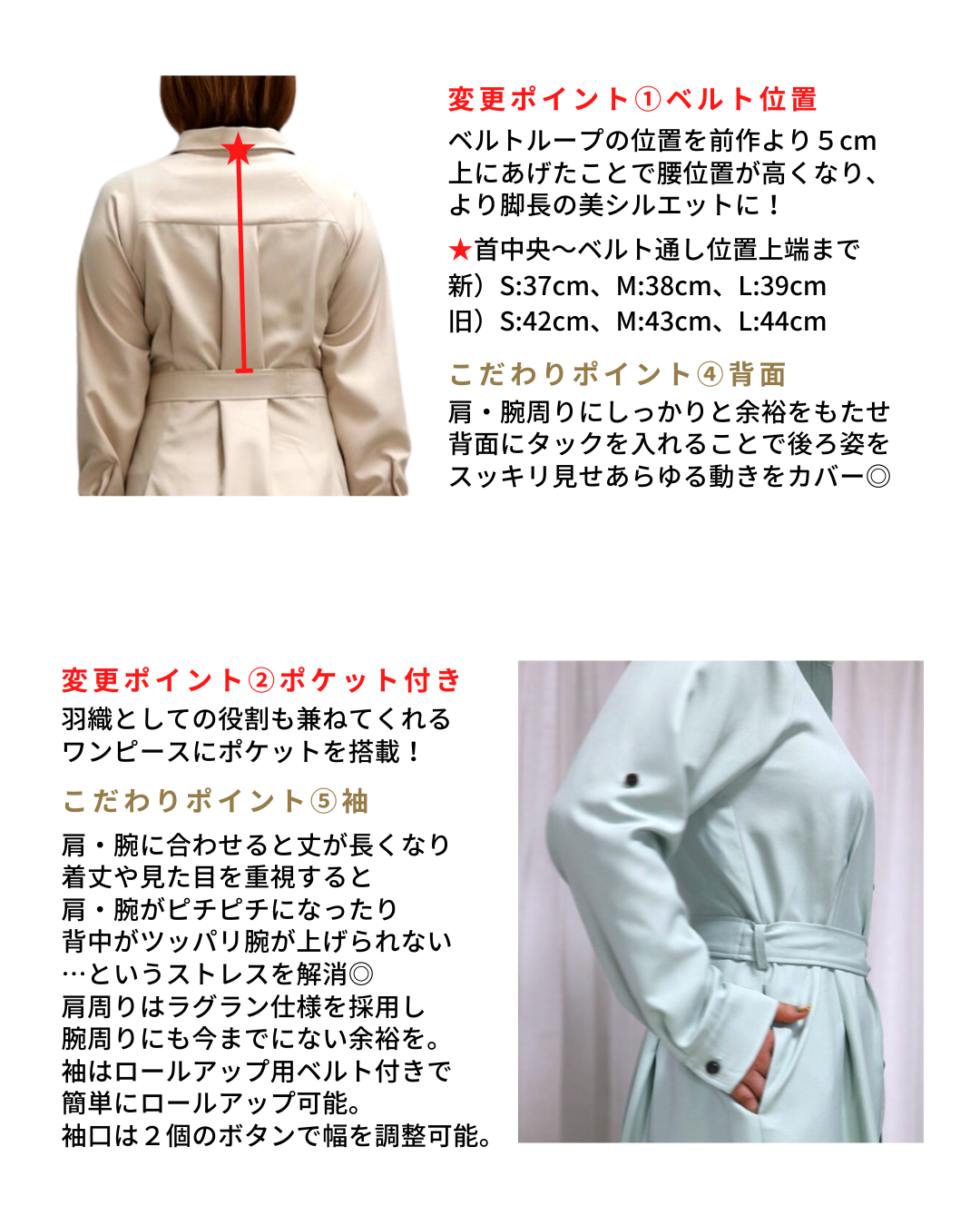 | 着丈 | 108㎝ | 110㎝ | 112㎝ |