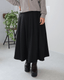 縦のラインをつくりつつ折り込むデザインのタックスカートにすることで、綺麗にAラインに広がる生地量は確保しつつ腰回りが広がりにくい仕様にしました◎