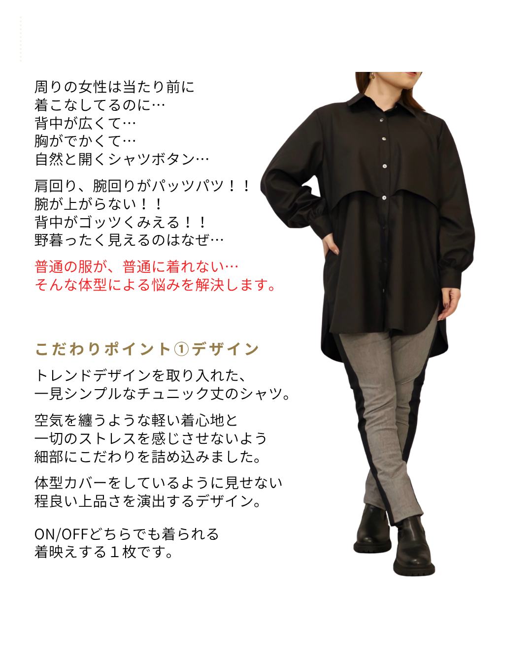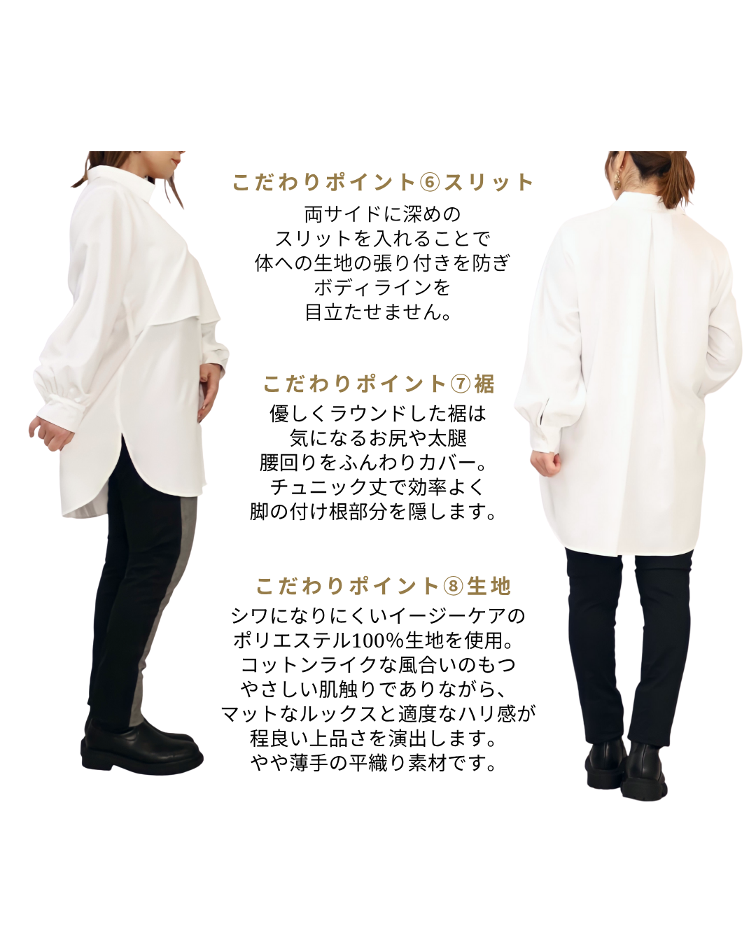 体型カバーをしているように見せない程良い上品さを演出するデザイン。