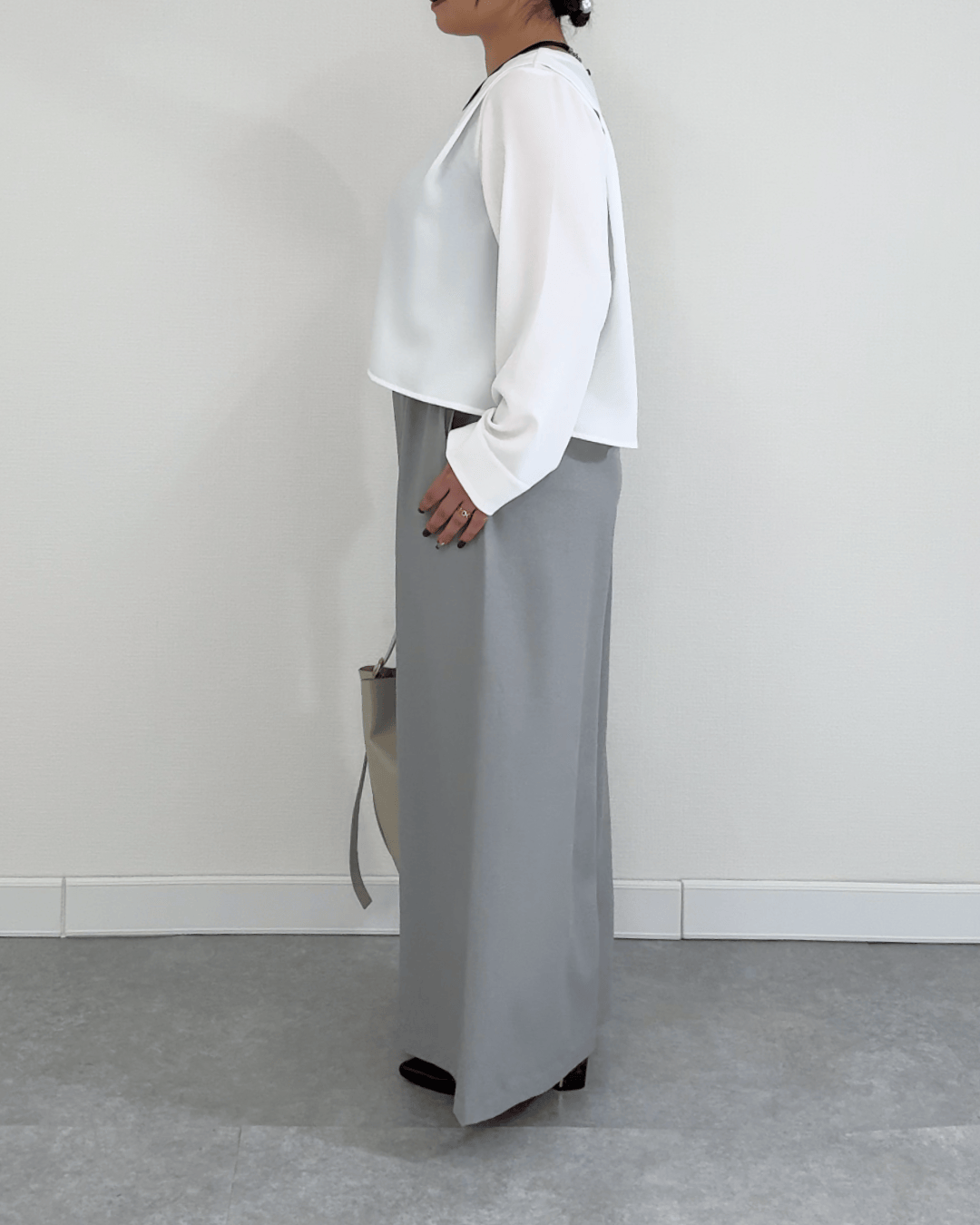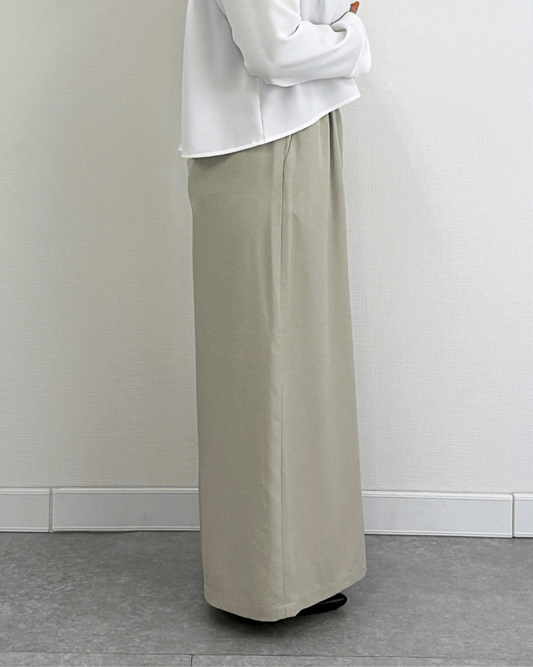 真っ直ぐ下に落ちるシルエットでキレイめにもカジュアルにも対応〇